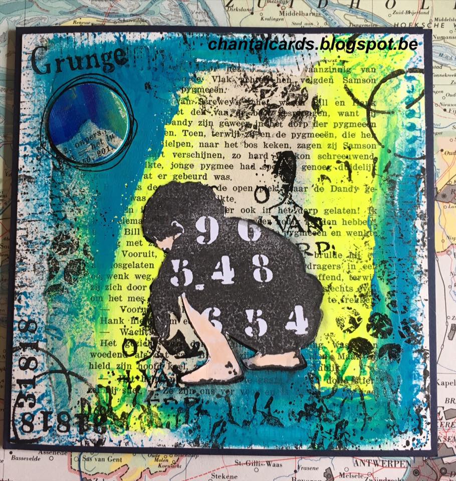 Chantal Verhoeven made a grungy card with bright colours. It is so cheerful!